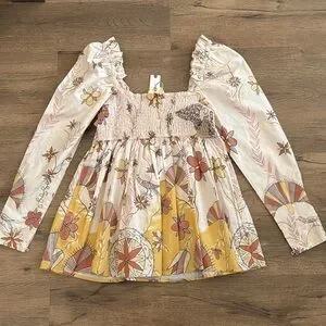 New with tags! Size XS, fits like a Small. Has elastic shoulders, can be worn on or off the shoulders. With a baby doll top that flows out. Elastic on back.