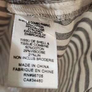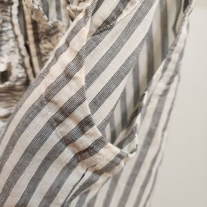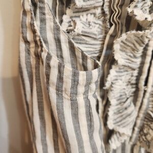 Linen and cotton blend sleeveless top featuring ruffle detailing. Hook and eye front closure. In good pre-owned condition. No flaws noted. See pictures and video for details.