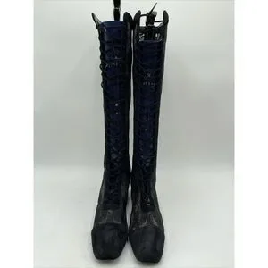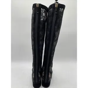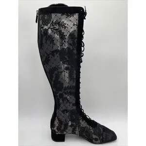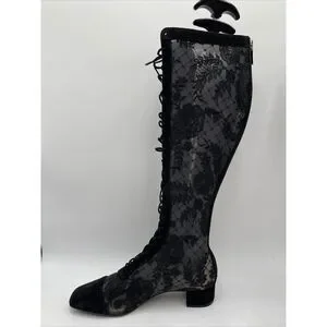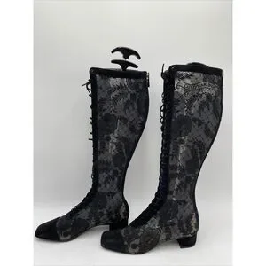 Elevate your style with these stunning Women's Christian Dior Naughtily Boots in Black Size 37.5. The boots feature a beautiful floral pattern and a square toe shape, making them perfect for both casual and party/cocktail occasions. The low block heel style adds a touch of sophistication, while the lace and logo accents make them a must-have for any fashionista.