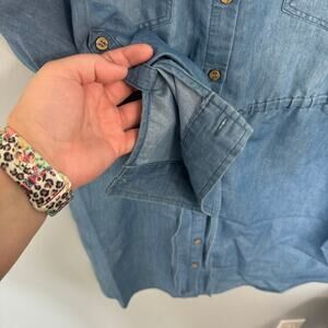 Ci Sono Blue Chambray Button Down Shirt Dress Size Large Knee Length