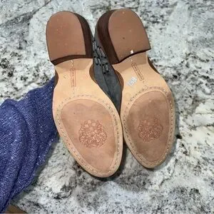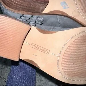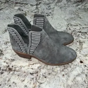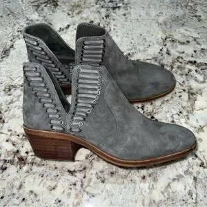 Vince Camuto Gray Stone Suede Pevista Slit Lace Ankle Heeled Bootie Size 5.5
