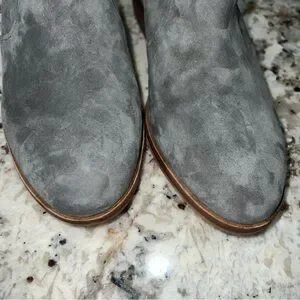 Slip on gray leather suede booties