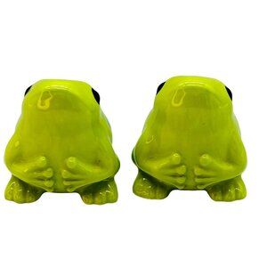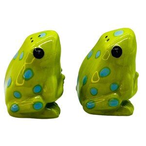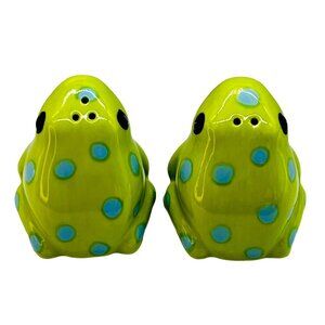 Green Frog Toad Blue Polka Dot Salt Pepper Shakers 1.75 inch Ceramic
