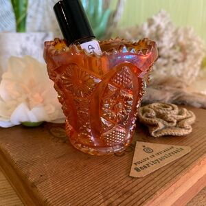 Pretty 1960’s vintage orange carnival glass toothpick / candle / match holder