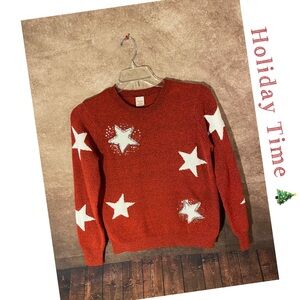 Holiday Time 🎄 Red, white & silver sequin star sweater-women’s size M-EUC!!