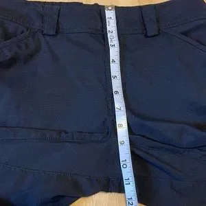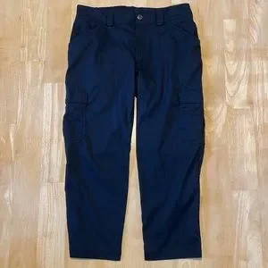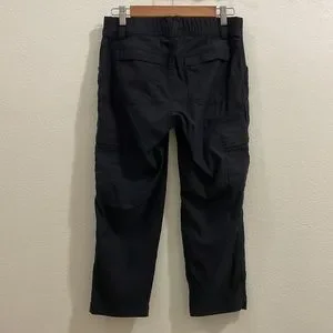 Preowned in like new condition. 97% Nylon and 3% Spandex. Tough-yet-lightweight. Moisture wicking. Dries within minutes of getting doused. Button and zipper closure. Wide back elastic waistband that lies smooth and never bunches or gaps. 8 useful pockets, including a zippered front security pocket, 2 streamlined cargo pockets, and a deep Pokey Things Pocket to prevent pruner punctures or screwdriver jabs. Hidden crouch gusset prevents pinching when you crouch or sit. Mid rise. Trim hip and thighs. Hits at calf. Machine washable.