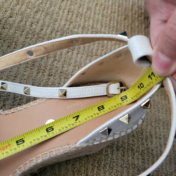 anthropologie may police brand luxury espadrilles in white buttery leather with silver studs and ankle strap details
