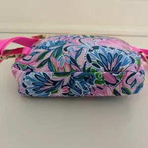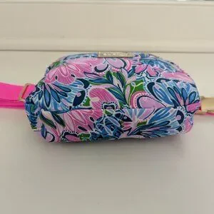 New without tags! Lilly Pulitzer GWP Belt Bag In Gecko Green Tiger Sunrise. Super cute! It is a lovely pink, blue, and green color with gold hardware and a solid pink waist band. A must have to dress up any solid colored Lilly outfit! The interior is lined and has a pouch. It has an adjustable strap. Measurements are shown in the photos. Comes from a smoke and pet free home. Only marks found upon final inspection was an ink mark in the inner care tag and a rub mark on the gold Lilly Pulitzer logo on front. Message me if you have any questions. Enjoy!
