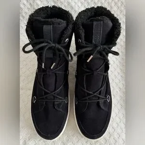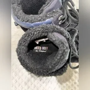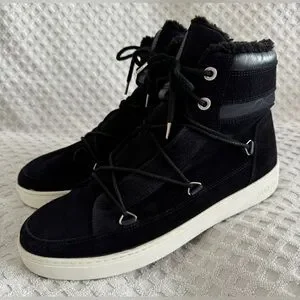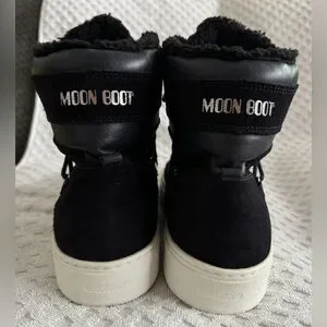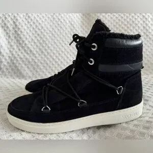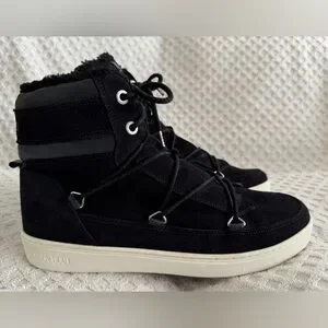 Tecnica Moon Boots Mercury High Paris Boot Black Suede Leather Faux Fur Size 10