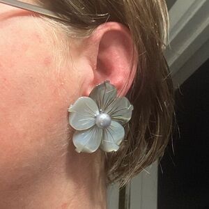 Carved Black Lip Hibiscus Jackets & Pearl Earrings Set