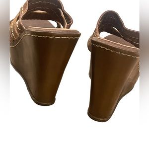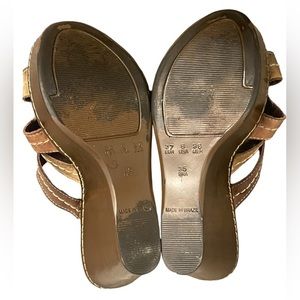Passarela Brazil Terra Stitched Strap Leather Wedge Sandal; size 6 women’s