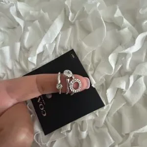 COACH • Silver/Diamonds Open Halo Trio Rings Set • Size 7 •