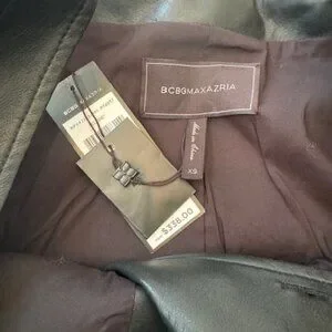 NWT BCBGMAXAZRIA Clyde Faux Leather Moto Jacket Top in Black XS