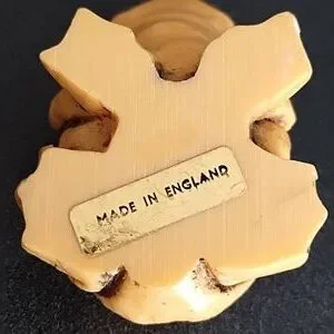 This sophisticated frog has beautiful copper/ brown glass eyes. It is ivory colored with some black detail. Made in England. It is approximately 4" from front to rear and 2" tall.