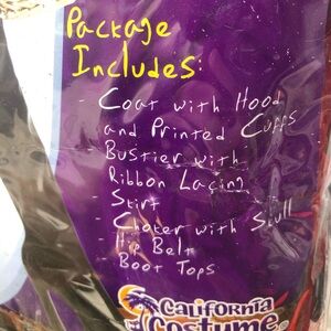 complete. rare. very good pre-owned condition. item may have never been worn. chest is definitely for average to smaller size. also skirt says it is size small but definitely more like a large. shirt will most likely not fit and will need to be altered.