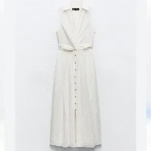 ZARA Openwork Embroidered Eyelet Midi Dress NWT 3017/653