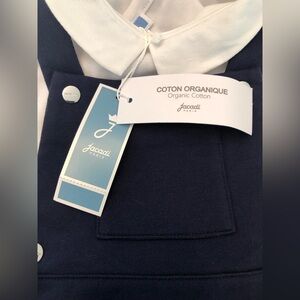 NWT! Jacadi Paris two piece white collared bodysuit & navy blue overall loungers