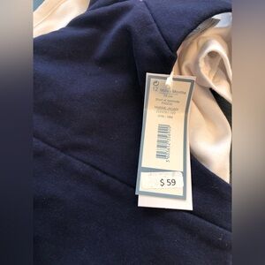 New with tags! Separates but selling as a combined set. Collared white short-sleeve body suit with navy blue overalls - super soft material! Adorned with silver snaps for easy on/off and diaper access. Size 12 months.