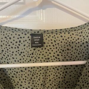 Really pretty smocked blouse (almost sort of like a peplum!) from Shein Curve. It’s an awesome olive/army green color with small black dots throughout.