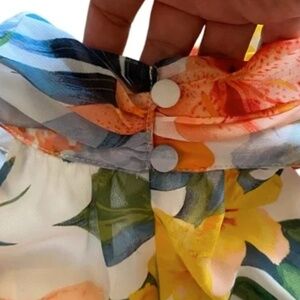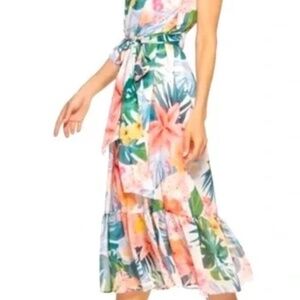 Excellent like new condition! Sleeveless High halter neckline Ruffle hem Tropical floral print Fully lined Elastic waist Tie at waist Hidden back zipper Button closures at neck Shell: 100% polyester Lining: 100% polyester Machine wash MSRP: $152.00 Made in Vietnam Tags: Revolve Romantic Feminine Baby Shower Cocktail Garden Party Night Out Bohemian BohoTravel Vacation Resortwear Wedding Guest