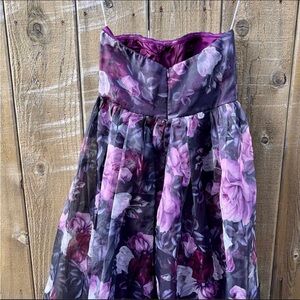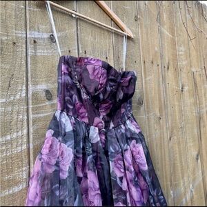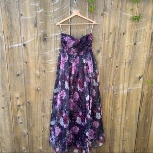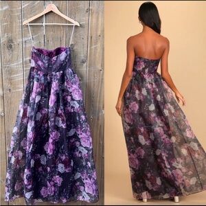 Purple Floral Strapless Bustier Chiffon Organza Maxi Dress 🌿