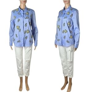 J CREW Blue Stone Embellished 100% Cotton Button-Up Shirt Women's Size 6
