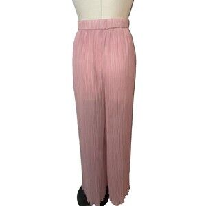 ZARA Women's Micro Pleated Wide Leg Chiffon Pull-On Pants size M NWOT Mauve Pink