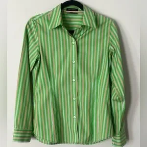 Foxcroft Pink & Green Striped 100% Cotton Preppy Non-Iron Slim Fit Button Down