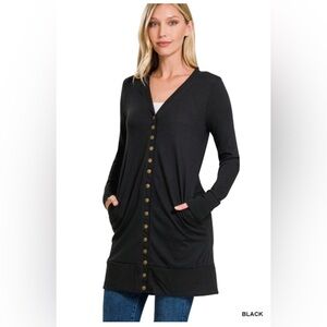 NWT ZENANA PLUS THIGH-LENGTH SNAP BUTTON SWEATER CARDIGAN