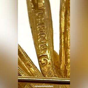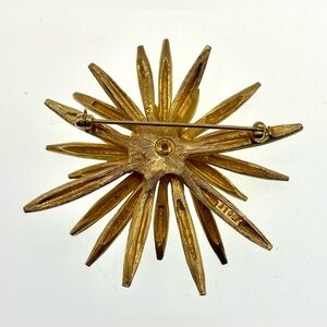 Vintage 50s Signed Boucher Gold Tone Textured Polished Starburst Brooch Pin MCM