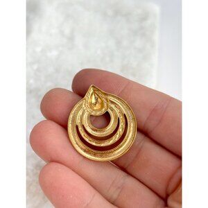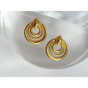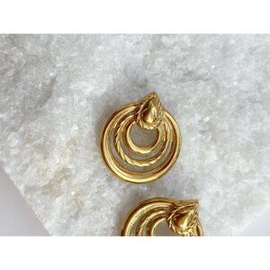 Vintage Gold Toned Rope Designed 80's Hoop Triple Layered Retro Earrings