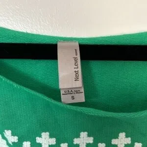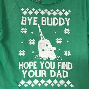 Christmas party shirt with wide neck in green featuring quote from elf. Worn once with a skirt and tights. Perfect for an ugly Christmas sweater party if you want something a little lighter weight! Three quarter length sleeves. Size small.