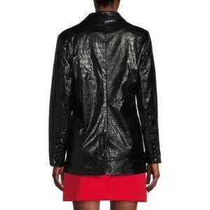 This stylish blazer is designed in croc-embossed faux leather finish with double-breasted button front.