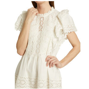Beautiful eyelet lace embroidered mini dress. Hits right above the knee.