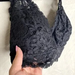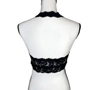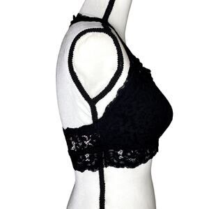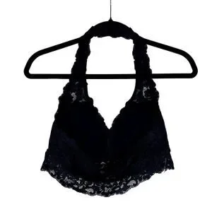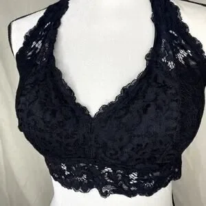 DOBREVA Padded Floral Halter Lace Wireless Bralette Black Large Intimates Bra