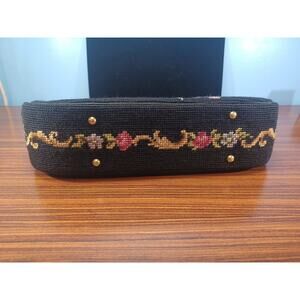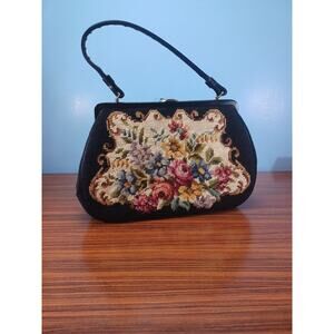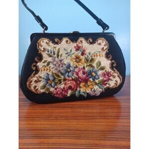 Vintage Needlepoint Embroidery Floral/Flowers Purse Handbag Top Clasp W/Receipt