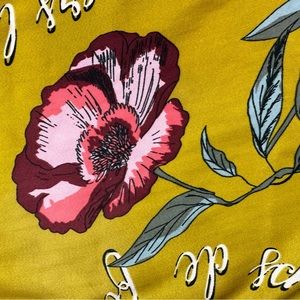 French words like fleur and magnifique adorn the shirt throughout with bright pops of colors found on flowers and hummingbirds.