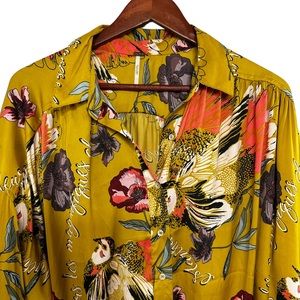 Free People Magnifique Marigold Long Sleeve Oversized Button Down EUC Size M