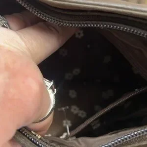 Cute flower detail inside with a side pocket in the enclosure