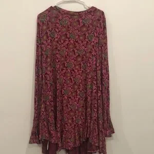 Free People NWT ($108 retail!) Olivia Printed Tunic Top/Dress 🌺 Stunning piece! Gorgeous floral print throughout. Deep v neckline with small button closure. Beautiful bell sleeves. Tiered layer hem. Stretchy and Flowy. Size Large.