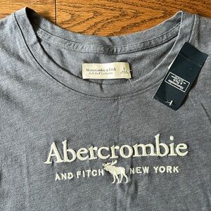 Abercrombie and Fitch Blue Shirt. Women’s Small. Soft A&F Collection. Blue shirt with white “Abercrombie and Fitch New York” with moose logo embroidered on the front. 60% cotton, 40% polyester. Machine wash.