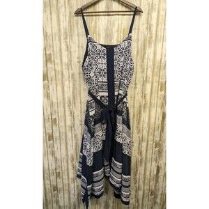 Lane Bryant Navy Blue White Handkerchief Dress Straps Belted Size 26/28 4X