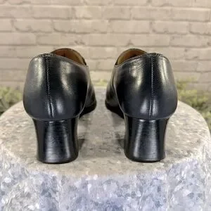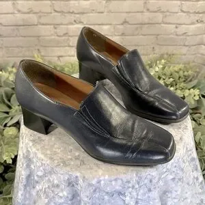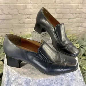 Naturalizer Navy Blue Leather Square Toe 2” Dress Heel Loafers WMS 8M💙GUC💙