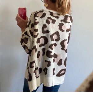 Animal Print Dolman Sleeve Oversized Fit Sweater. A Fall favorite! Super cute and fun to wear. Brown, pink, cream. Long sleeves. Oversized fit. 100% acrylic. I am modeling size S. Fit is true to size. New boutique item.