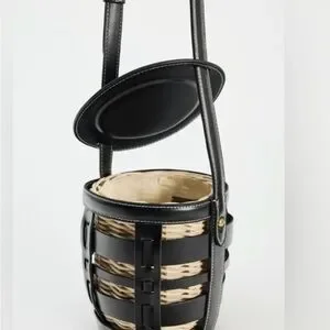 Love this unique bag by Zara. With wicker basket and faux leather trim. Purse closes with its attached lid.