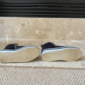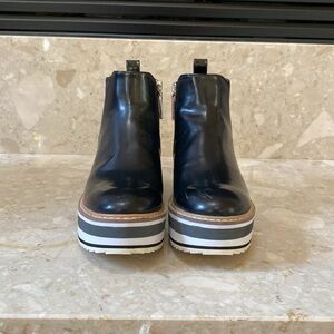 Zara black platform booty zip up. Shiny black leather suede in the back slight scuff left toe. 36m