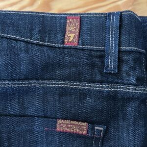 Dark blue, jean color. In great shape. These are long and could be hemmed for almost any height. Make me an offer.