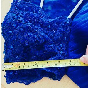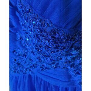 This gown is a stunning blue and worn once for a short time and well cared for.