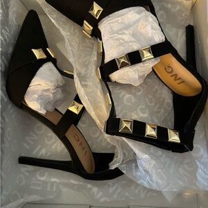 Brand New in the Original Box, I.N.C. Syndiaf Black Studded Heels, Size 7M, Color-Black w/Gold Hardware