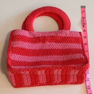 J. Crew Crocheted Pink & Red Striped Handbag